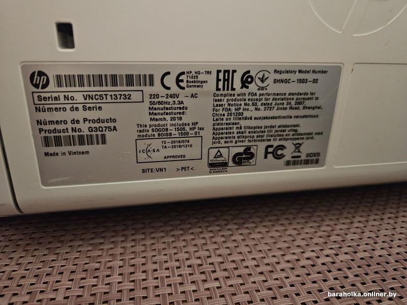 • МФУ HP LaserJet Pro MFP M227fdw G3Q75A б/у, не работает сенсорная панель, нужно заправить картридж, в отличном состоянииМинск