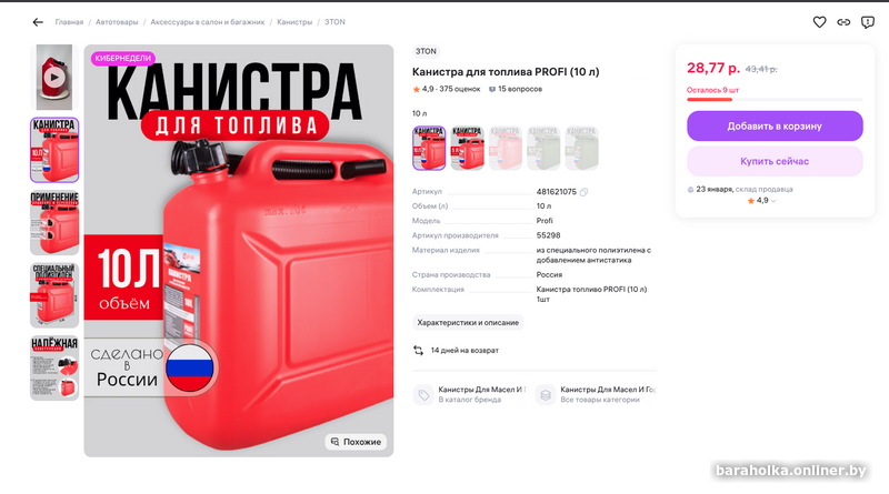 Используются для хранения и транспортировки жидких опасных грузов, в том числе бензина и дизельного топлива. Позволяют произвести дозаправку автомобиля, катера, мотоблока и другой техники в любом удобном месте. Крышка укомплектована прокладкой из бензостойкой резины, которая обеспечивает герметичность и исключает испарение топлива, в комплект входит гибкий носик для удобной заправки, который имеет воздуховод, обеспечивающий равномерный слив жидкости. Канистры изготовлены из специального полиэтилена с добавлением антистатика, что обеспечивает высокую устойчивость к воздействию нефтепродуктов, а также нейтрализует способность к накапливанию статического электричества, прошли сертификацию в Центральном научноисследовательском и проектно-конструкторском институте морского флота (ЦНИИМФ).