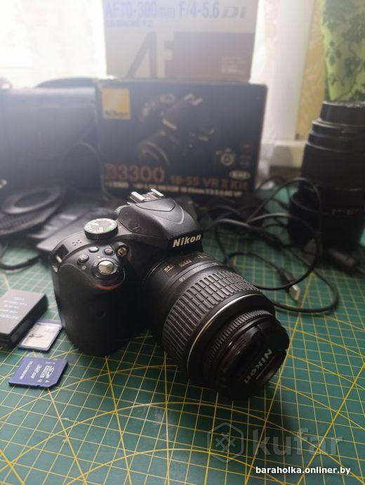 Продам Nikon D3300, пробег затвора 19+ тыс фото, затворы выхаживают до ремонта 100000+, можно сказать только прошел обратку. Фотоаппарат покупался в Европе у знакомого репортёра с пробегом 16 тыс 6 лет назад, в комплекте объектив Tamron, две флешки 32 и 4 гиг, пульты, два зарядных, две батареи, кабель, стекла, сумка. Сам фотоаппарат работает вообще без проблем от слова совсем, бережная эксплуатация. В подарок отдам штатив с кнопкой блютуз (Android, iOS). Смотреть и забирать в районе Лошицы.