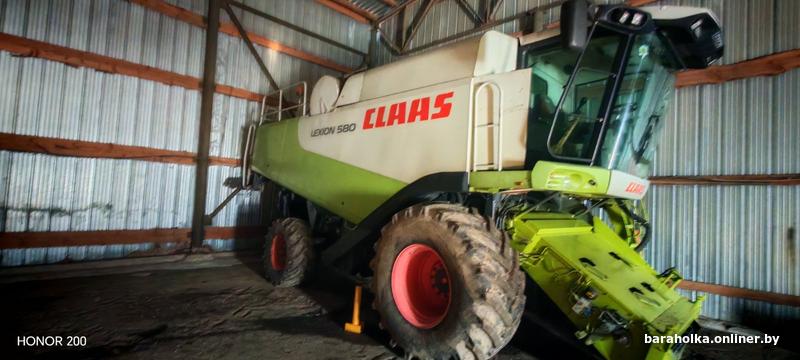Зерноуборочный комбайн в комплекте с зерновой жаткой и тележкой для транспортировки жатки CLAAS LEXION 580