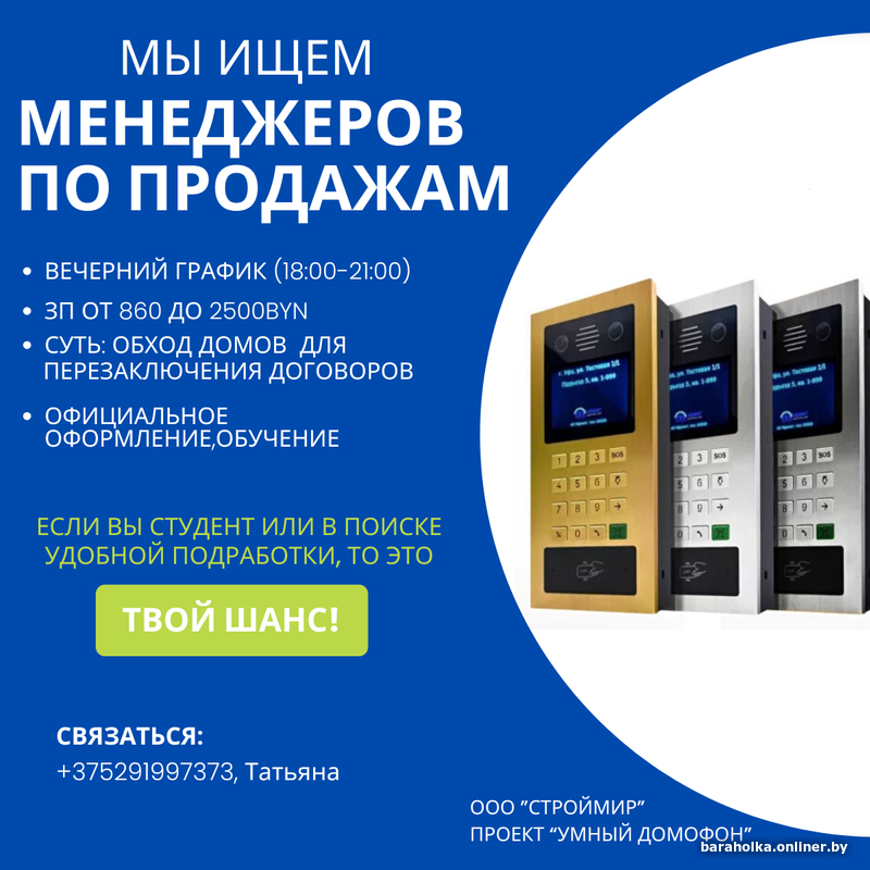 Задать вопросы, откликнуться: +3751997373, Татьяна