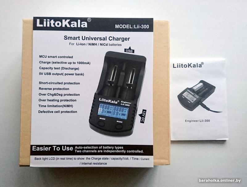 Liitokala Lii-300 - интеллектуальное зарядное устройство для заряда, разряда и тестирования Li-ion, Ni-MH и Ni-Cd аккумуляторов. Lii 300 это обновленная версия Lii 260, которая имеет USB выход и может использоваться в качестве Power Bank, а также отличается возможностью поддерживать никель-металлогидридные аккумуляторы.