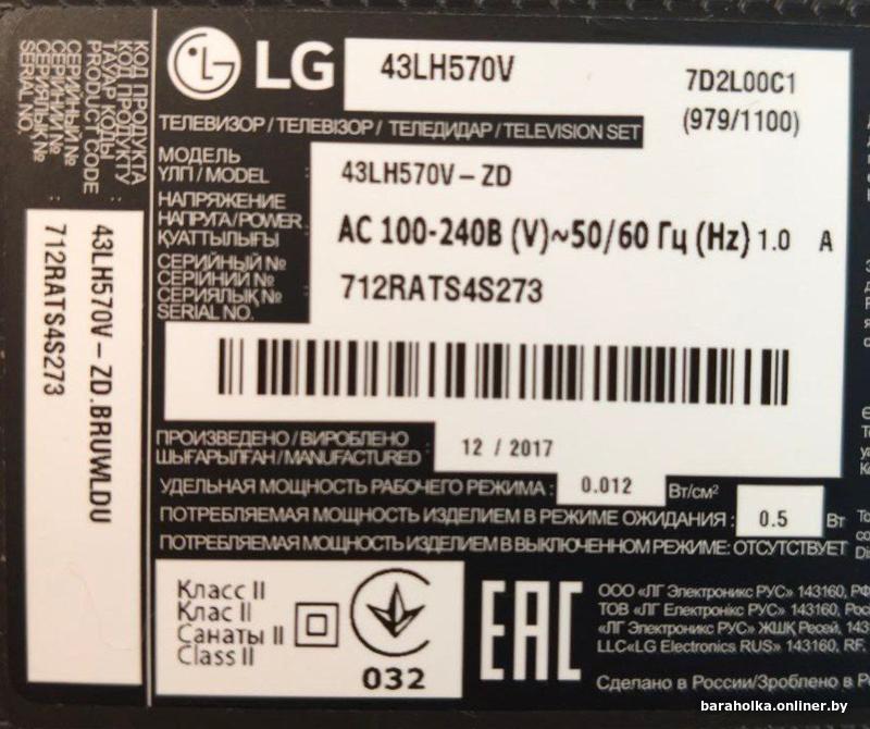 ТВ «LG 43LH570V» с разбитой матрицей,других проблем нет-включается,экран горит,звук есть,выпущен в декабре 2017 г.Только телевизор,без акссесуаров,в остальном корпус,рамка как новые.Маркировки для зап.частей на фото,самовывоз,территориально ул.Комарова.Просьба смс не писать,общаюсь только по телефону +375-29-7243415.