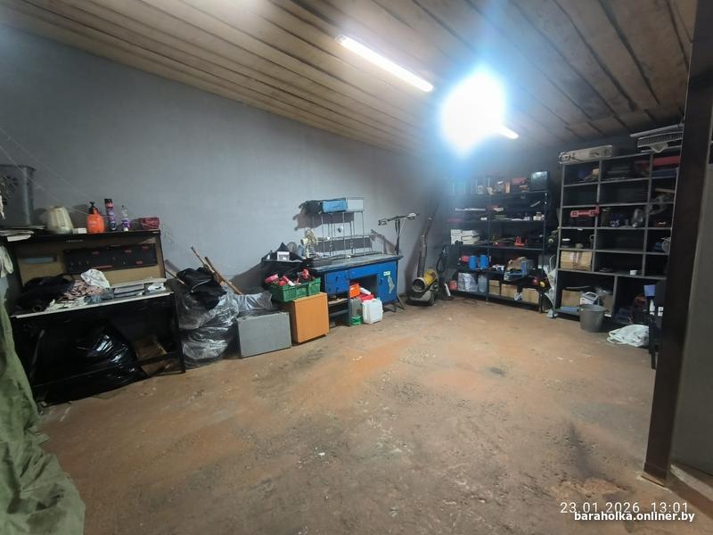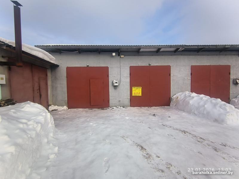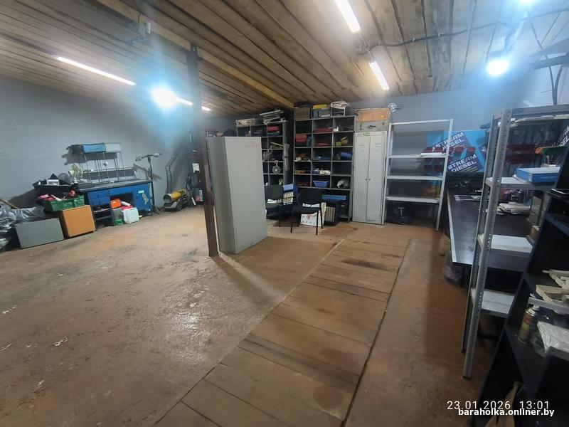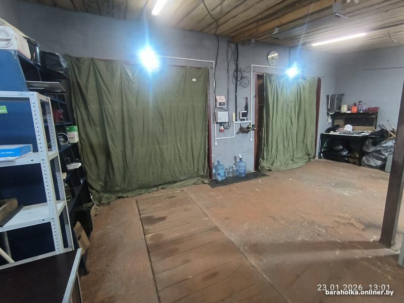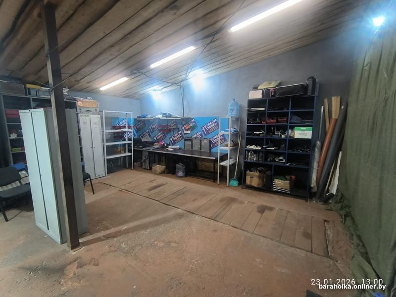 Продаётся огромный гараж (52м2) в центре промышленной зоны Логойск (ул. Заводская напротив гранита). Новая постройка. Оштукатурен внутри и снаружи. Покрашен. Потолок утеплён и подшит. 220/380 вольт (есть проект согласованный на 380В/10кВт). Имеется одна глубокая яма. Размер гаража 8,2м*6,5м. Высота потолков 2,6м-3,5м -односкатная крыша. Для отопления установлена тепловая пушка на дизельном топливе "Master BV77" - очень быстро прогревается зимой. Продаёт собственник. С мебелью (верстаки и стеллажи видно на фото) Идеально для бизнеса. Возможно докупить рядом стоящий гараж (52м2) и получить итогово 104 м2.