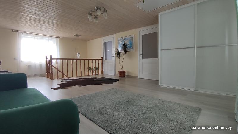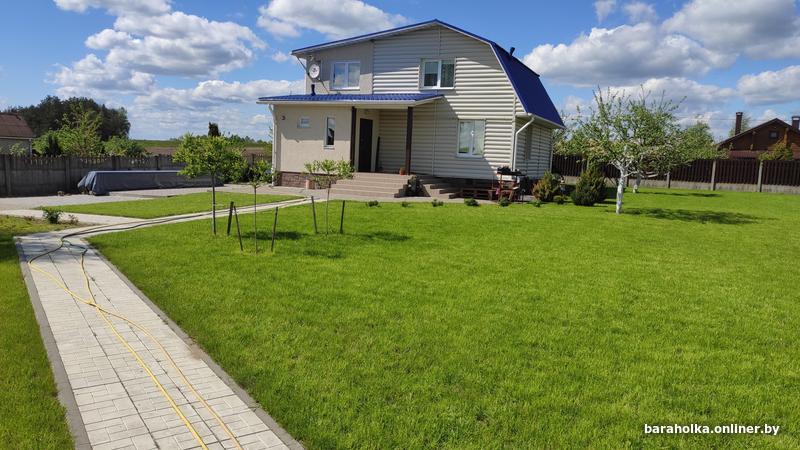 Дом 20 минут езды до Минска, 0,5 км от Логойска, недалеко горнолыжные комплексы «Силичи» - 3 км и «Логойск» - 1 км. Общая площадь 121 м. кв., жилая – 90, два этажа. Большая гостиная с камином, 3 спальни, санузел, душевая и банный комплекс, полностью оборудованная кухня, терраса, подвал (погреб). Газовое отопление и горячая вода, скважина с поддержанием постоянного давления (гидрофор), септики, оптоволоконный Wi-Fi, телефон. Встроенная бытовая техника, мебель. Дом построен на земельном участке 20 соток в частной собственности. Река Гайна 250 м, лес 300 м. Участок обустроен – ухоженные газоны, плодовые деревья и кустарники, декоративные и хвойные растения, мощёные парковочная площадка и дорожки, садовая мебель, зона отдыха под навесом (летняя кухня, барбекю), хозпостройка для хранения садовой техники, инструмента и инвентаря, дровник. На уличную территорию выведена вода для полива и подключения мойки высокого давления. Так же установлены уличные электрощитки 380 В (трехфазная сеть, быстрая зарядка авто) и 220 В для газонокосилки. Заезжай, живи, наслаждайся.