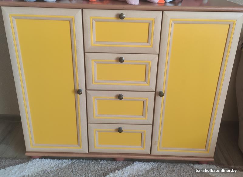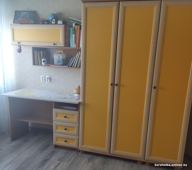 Мебель для детской комнаты в очень хорошем состоянии. Тяжелая, качественная. В комплекте - шкаф, большой комод, письменный стол с новой столешницей и две навесные полки для книг и канцелярии. Самовывоз.