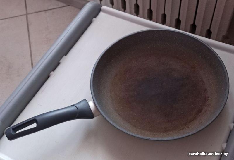 Жарит хорошо. Глубоких царапин и нагара нет. Просто от времени дно немного потемнело.