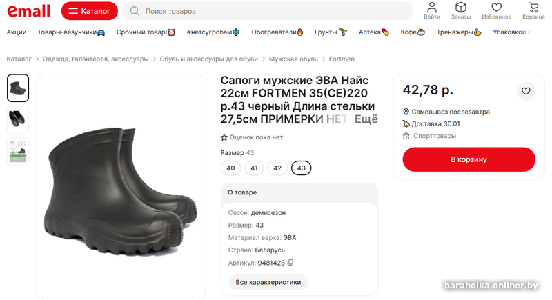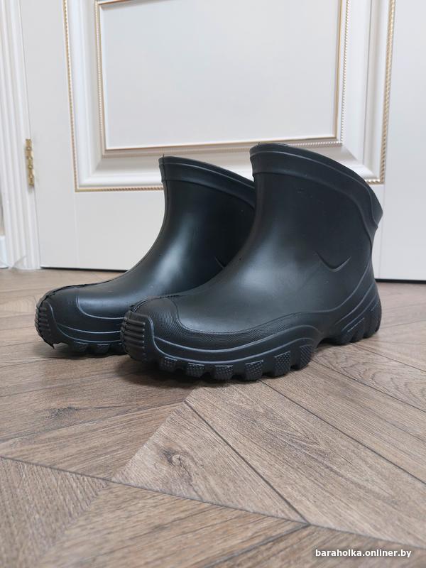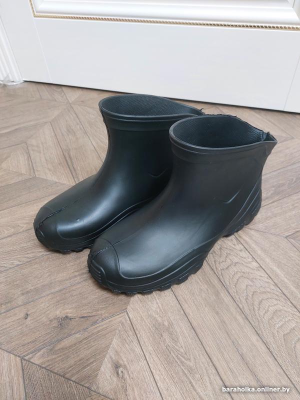 Короткие мужские сапоги из ЭВА (водонепроницаемые + держат тепло в ногах). Отлично использовать в непогоду и сильную зиму, влагу не пропускают. Абсолютно новые, в использовании не были. Размер (на подошве) - 46. Длина по стельке: левый - 30,5 см (305 мм), правый - 31 см (310 мм). Максимальная высота - 20 см. Сапоги абсолютно пустые: без утеплителя, манжет и чулок. Отправляю почтой/европочтой после полной предоплаты (доставка за счет получателя). Торга нет и не будет!