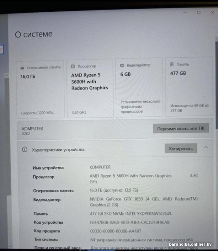 Видеокарта: Nvidea GeForce RTX 1650 4gb и AMD Radeon(TM) Graphics 2GB