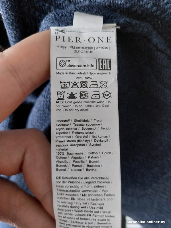 Фирменный мужской джемпер свитер. Полузамок. Производитель - Pier One (Производство Бангладеш). Материал - 100% хлопок. В отличном состоянии, без каких-либо дефектов. Размер (указан на изделии) - S. Подробные замеры: длина изделия - 64 см, полуобхват груди - 47 см, длина рукава от плеча - 69 см. Возможна отправка белпочтой/европочтой (после полной предоплаты + доставка за счет получателя).