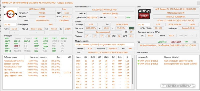 Оперативная память: Kingston FURY Beast 4x8GB DDR4 (всего 32GB, частота 3200)