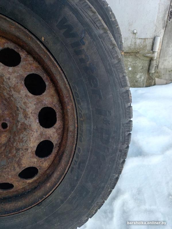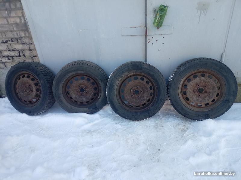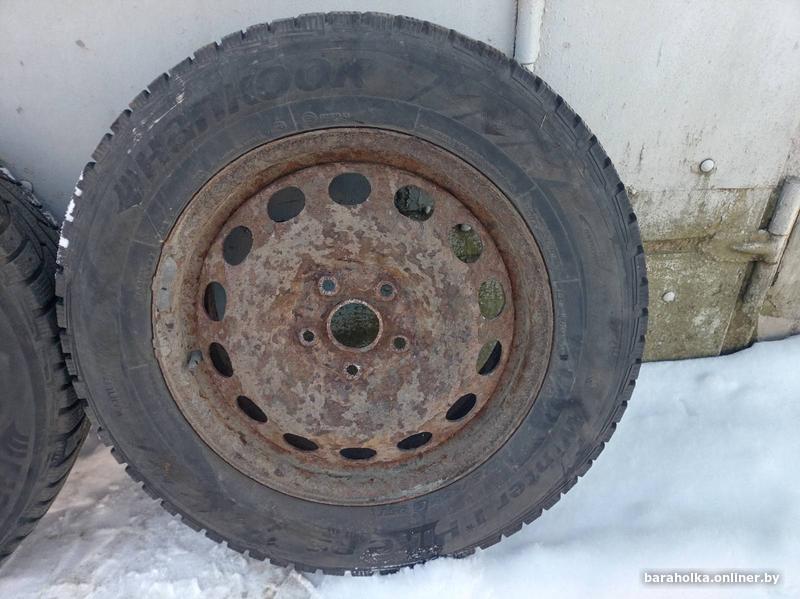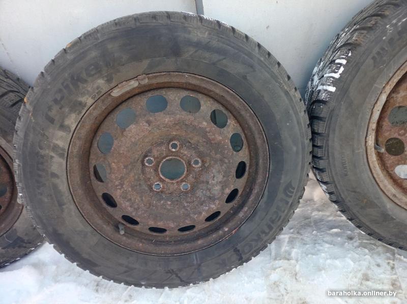 Резина HANKOOK 205x65xR16 - 95T. Резина с 2014 года. покупал новую комплектом 4 колеса. шипованная, половина шипов осталась. пару шин клееные проколы. 11 лет беспорочной службы. остаток 4-5мм. ровная не бьет, износ равномерный. Диски R16 ширина 6,5 вылет ET50. разболтовка 5х112. Ц.О.- 57.1 . диски с 2009 года, ржавые но целые, один диск ремонтировался.