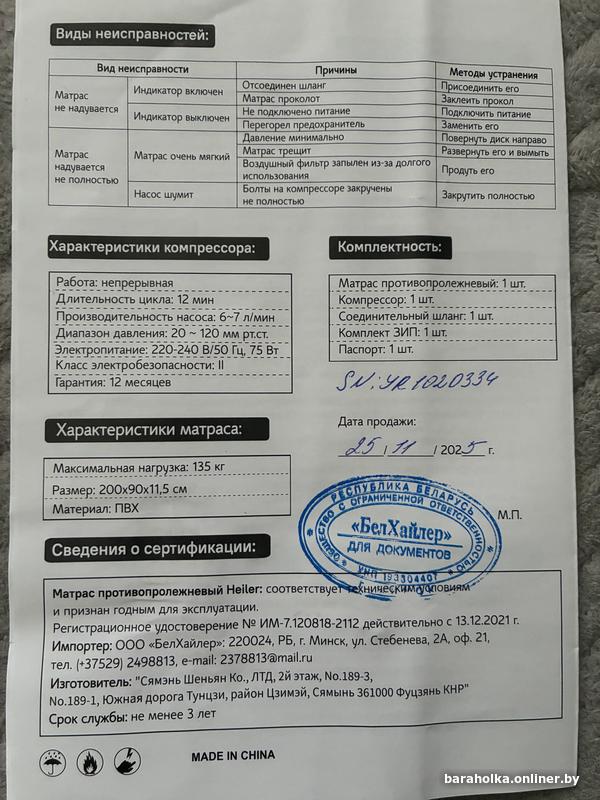 Матрас противопролежневый ячеистый АРМ-ВО1 с компрессором, в отличном состоянии Б/У около 2 недель. Дата приобретения 25.11.2025, на гарантии. Заводской район , метро Автозаводская. тел. +375 (33) 635-88-48Минск