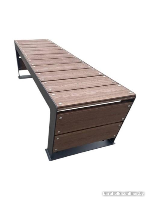Сиденье скамьи составлено из 16 отдельных досок (лаг), уложенных параллельно. Такое количество говорит о достаточно широком сиденье (рассчитанном на 3-4 человек) или об использовании планок небольшой ширины для эстетики и быстрого стока воды.