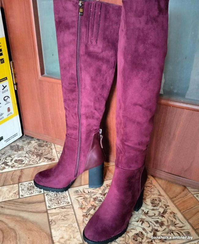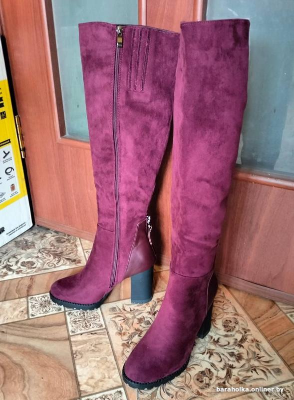 Женские зимние замшевые сапоги новые р.37,на молнии,с подкладкой из цигейки,цвет бордовый,каблук-9 см,высота сапог с каблуком-52 см,объём голенища-36 см,на среднюю ногу.Причина продажи-не подошел размер.Территориально ул.Комарова,на смс не отвечаю,все вопросы только по телефону +37529-724-34-15