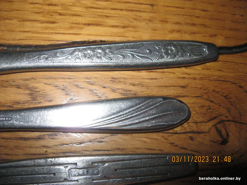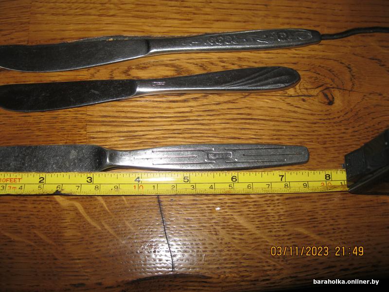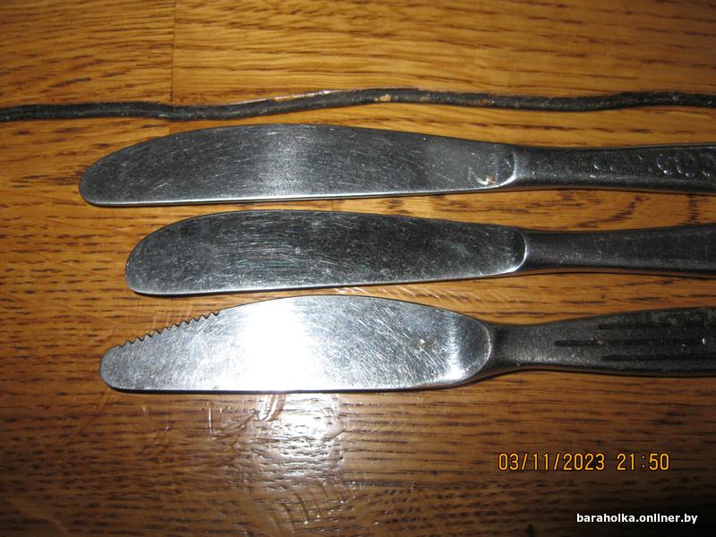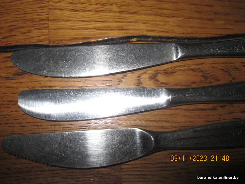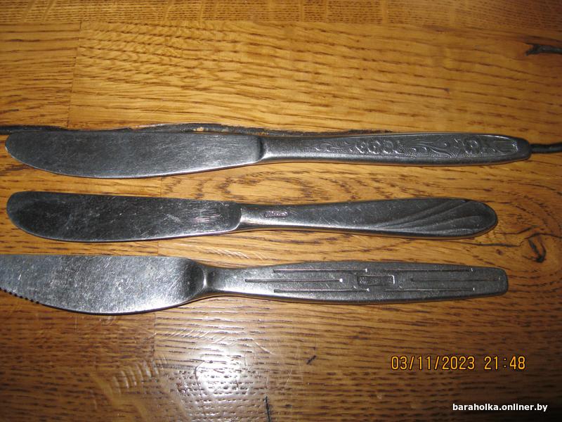 Три столовых ножа СССР разные верхний и средний на 1-ой фото в хор.сост. а у нижнего есть на лезвии и ручке потертости. Продаются только одним лотом сразу по одному не продам стоимость указана за все вместе. Абсолютно без торга. Только самовывоз в будние дни г.Минск ул.П.Панченко .Почтой и другими способами не отправляю вообще !!!!!+375297588569
