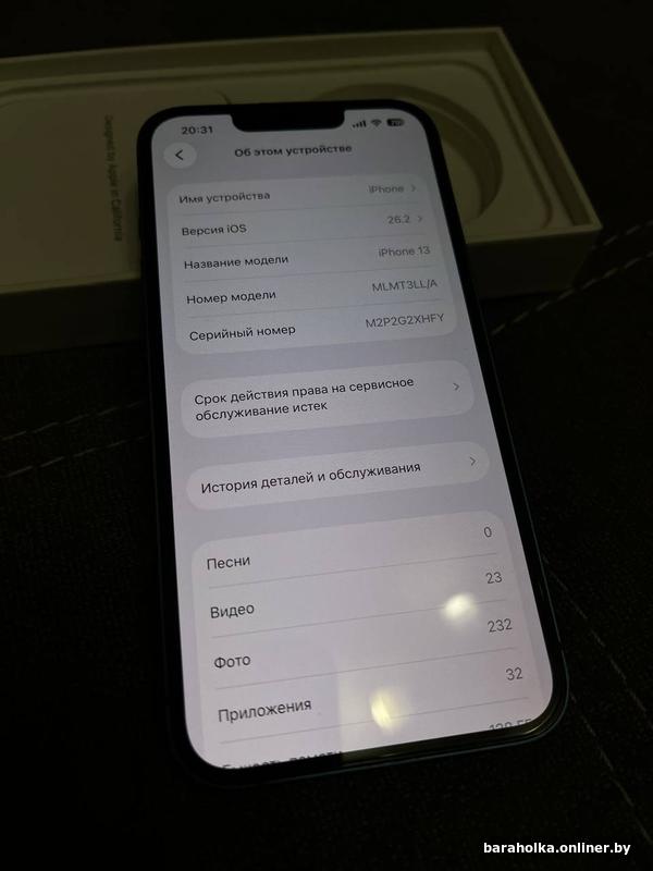 Айфон 13, дисплей целый с защитным стеклом. Задняя крышка целая. Аккумулятор 100%. Обслуживался в сервисе apple