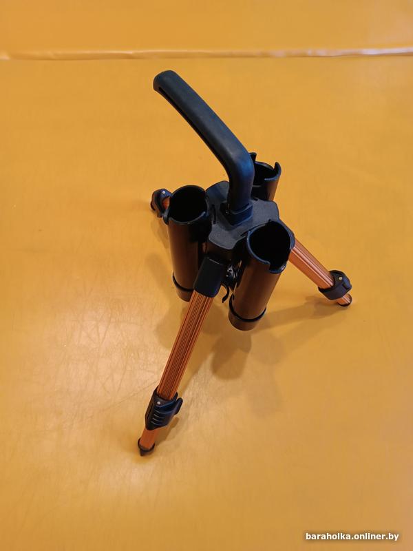 Тренога для трёх спиннингов Kaida, складная, телескопические ноги высотой от 30 до 44 см, складывающаяся ручка, чехол. Идеально подходит для ходовой рыбалки (можно нести сразу три спиннинга в собранном виде и быстро их менять). Совершенно новая, хранилась дома. 100 руб.
