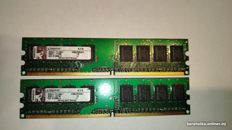 Оперативная память DDR2 Kingston Value RAM KVR667D2N5/512-IND. Общий объём 1 гб, две планки по 512 мб. Минск, Сухарево-4, Александр А1(29)3435881.