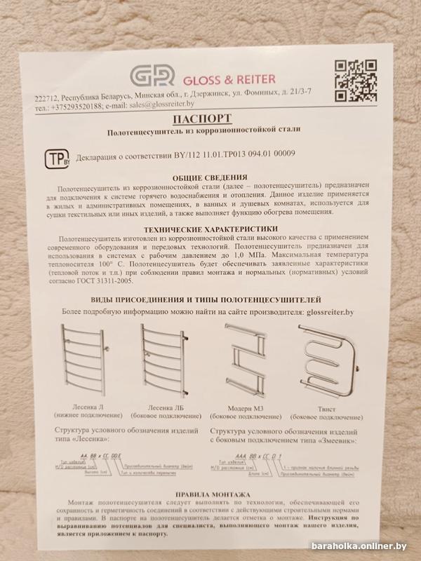 Остались документы, паспорт на полотенцесушитель.
