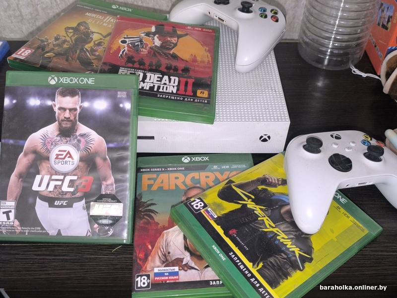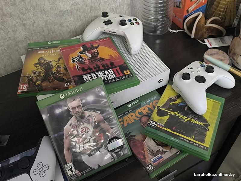 Продам Xbox one s 1T. Недавно заменена термопаста, установлен новый SDВ на 1T/ В комплекте два джойстика ( один от Series ), на втором нужна замена стиков ( тянет вниз). 5 дисков : UFC 3, Киберпанк, RDR 2, Фаркрай 6. MK 11 ( перестал устанавливаться ).
