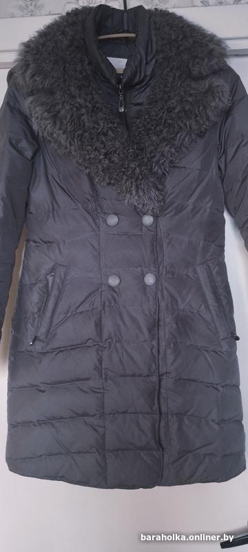 Пуховик женский серо-фиолетового цвета в нормальном состоянии, пух-перо, без химчистки, размер до 44. Ориентировочные мерки на фото. Есть капюшон, ремень.