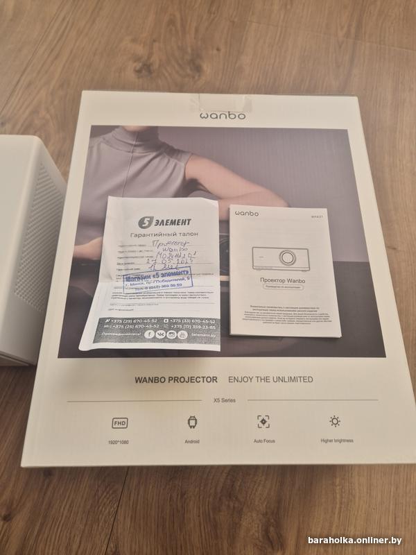 Проектор Wanbo X5 Air и Проекционный экран. матрица LCD, FullHD (1920x1080), светодиодный (LED), расстояние 1.1-3.9 м, экран 40-140", Wi-Fi