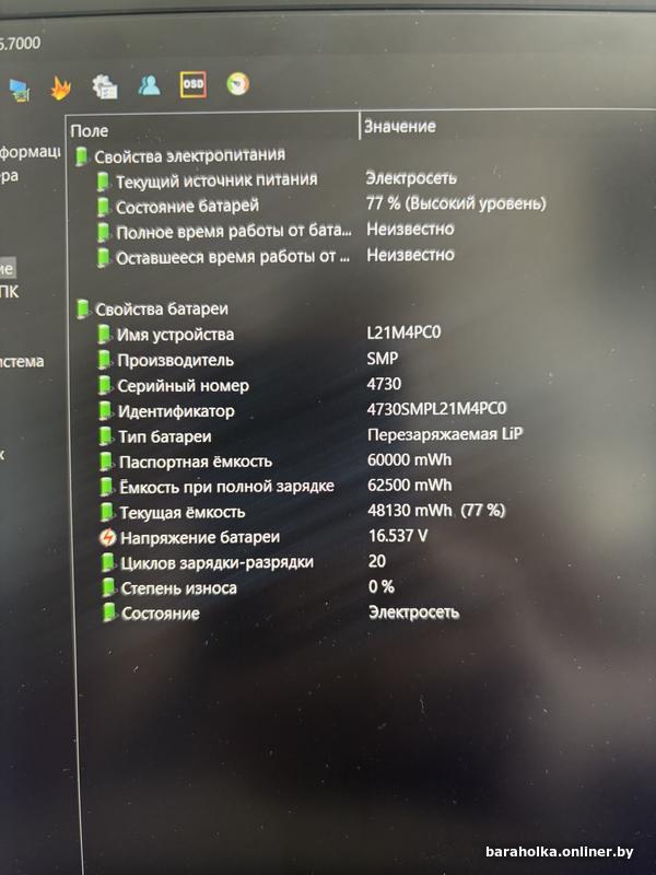 Аккумулятор: 60 Вт⋅ч, быстрая зарядка