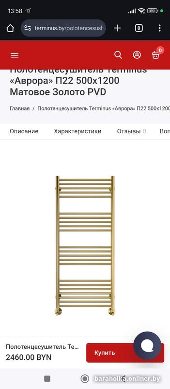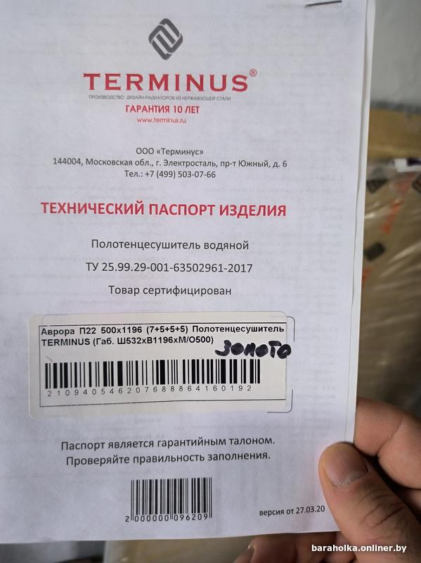 Полотенцесушитель TERMINUS Аврора П22 (500x1196) золото .