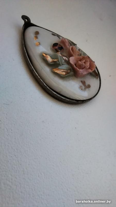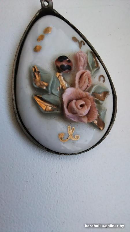 Винтажный кулон в форме капли с цветочным мотивом на металлической основе возможно мельхиор.