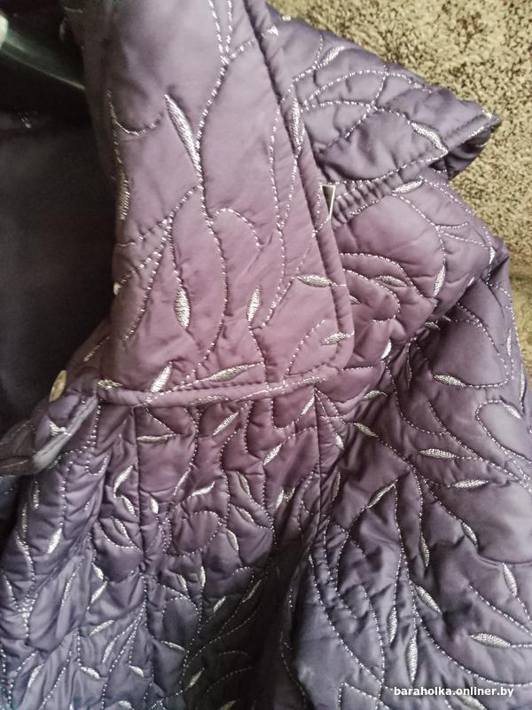 Тёплая. Красивая фиолетовая расцветка с тиснённым рисунком. На пуговицах, удобные карманы. Капюшон отстёгиватся, есть зажимы. Подходит и для зимнего сезона и на осень. Замеры на фото.