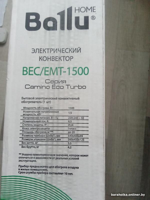 Продаю конвектор BALLU BEC/EMT 1500Вт серия CAMINO ECO TURBO самый современный Х-образный монолитный нагревательный элемент HEDGEHOG, ресурс работы 25лет, быстрый экономный нагрев каминного эффекта без запаха и шума, влагозащитный корпус степень защиты IP-24(можно использовать во влажных помещениях) защита от перегрева опрокидывания автоотключение термостат, компактные размеры, на ножках, предусмотрено вешать на стену, новый в упаковке, гарантия 3года телефон 8 025 6690763
