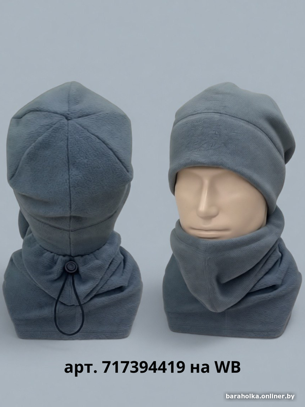 Универсальный мужской комплект из флиса серого цвета: шарф-снуд и шапка, идеален для холодной погоды. Мягкий, быстросохнущий материал, отличный тепло‑ и влагозащитный эффект.