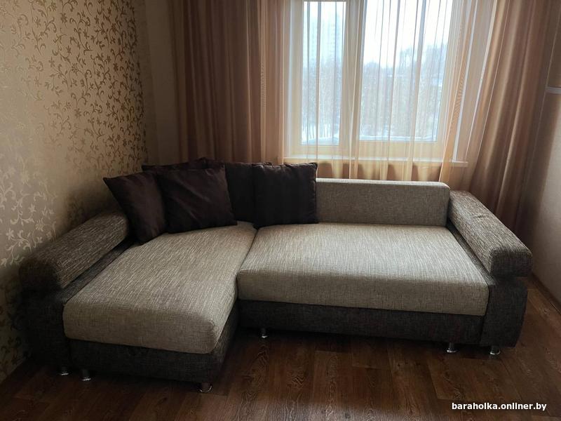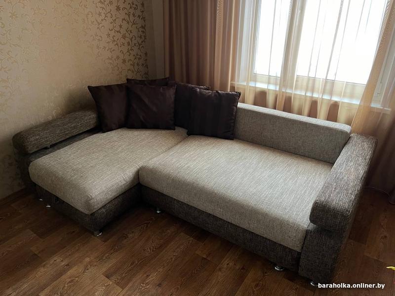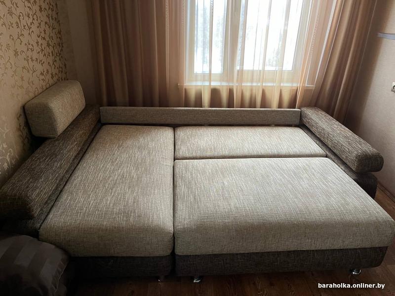 • Диван угловой, пружинный блок, ткань рогожка, 160×200 спальное местоМинск