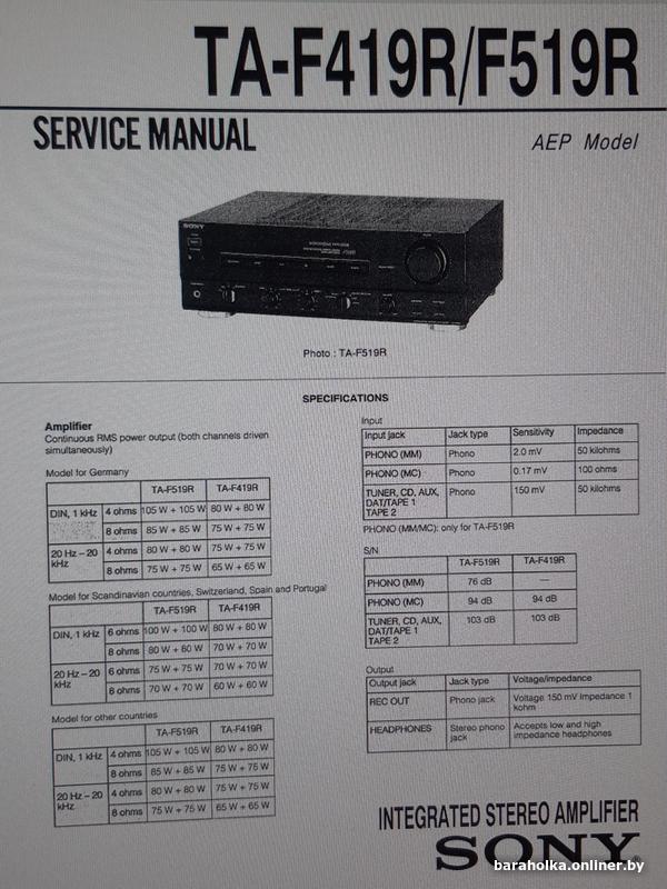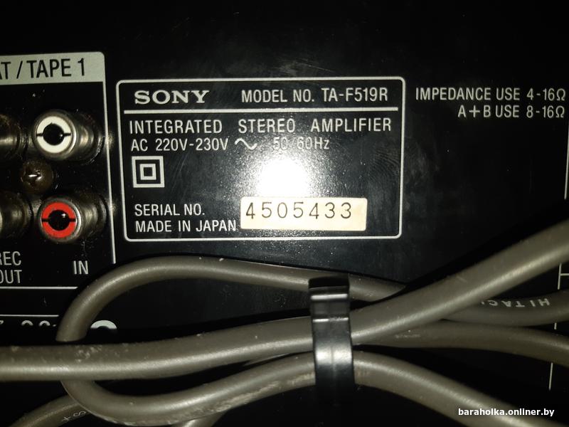 Интегральный стерео усилитель Sony TA-F519R. Рабочий, без нареканий. Отличный внешний вид. Характеристики на фото. Продаю в связи с приобретением усилителя более высокого класса (кстати тоже SONY, понравился). Без торга и почты. +375 29 650-18-17