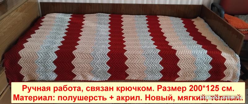 Посмотрите и другие мои аналогичные пледы за 26 декабря и 10 января - они с таким же рисунком, но отличаются цветом (нитки другого цвета) и чуть-чуть размерами. Все новые.