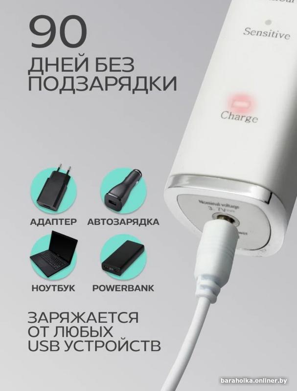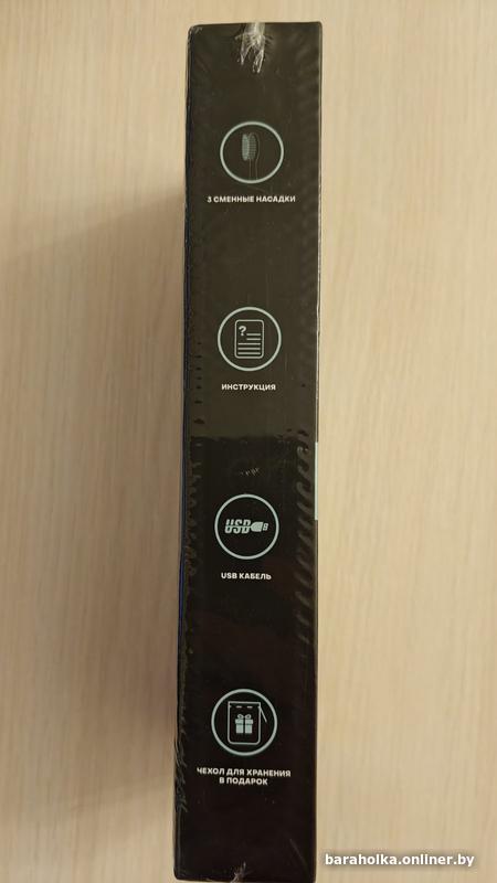В комплекте: зубная щётка, чехол для поездок, 3 сменные насадки, кабель USB для зарядки, инструкция. Управление: включить или выключить щётку посредством длительного нажатия кнопки питания; для выбора режима работы однократно нажать кнопку питания.