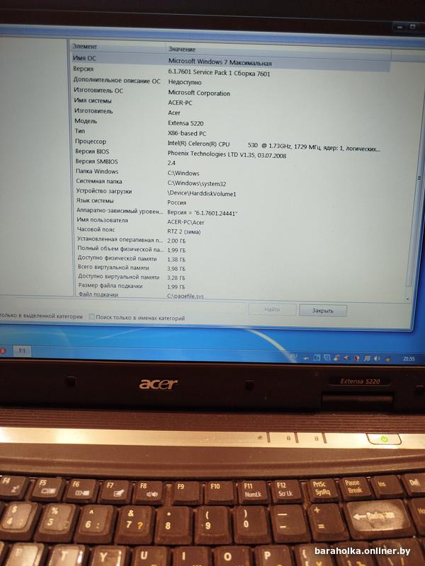 Ноутбук ACER Extensa 5220 , рабочий, клавиатура в порядке, экран отличный (все пиксели на месте) , цена 150 руб. мтс 8-029-7849855