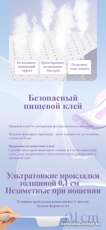 Толщина анионовых прокладок составляет 1 мм, они пропускают воздух, не создают парниковый эффект, не ощущаются при ношении, очень мягкие и приятные для кожи