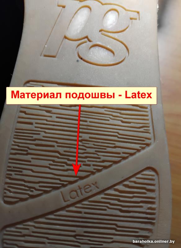 Материал подошвы Latex - смесь натурального каучука и резины; это облегченный и достаточно прочный вид подошвы, применяемый для уличной обуви.