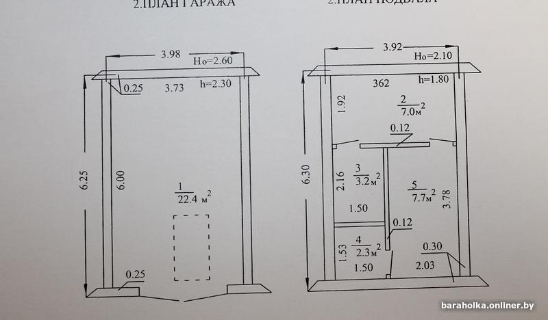 Размер внутри гаража 3.80х6.0=22.4м2. Подвал 3.62х5.8. разделен на 4 помещения, отличная лестница.