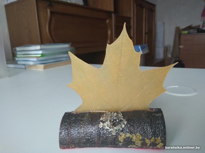 Ручная работа: лист -эпоксидная смола, внутри крона 9v