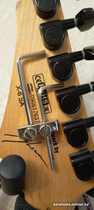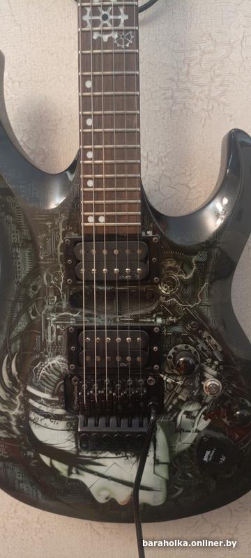Лады в хорошем состоянии, гриф ровный , анкерный стержень рабочий , флойд строй держит достаточно хорошо, в т.ч. и дайв-бомбы, есть отсечка на катушки хамбакеров, активный kill switch с подсветкой и питанием от кроны