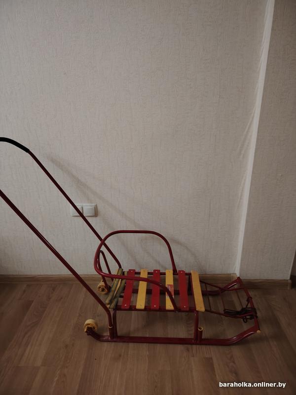 Продам санки детские с маленькими колесиками с толкателем, в отличном состоянии