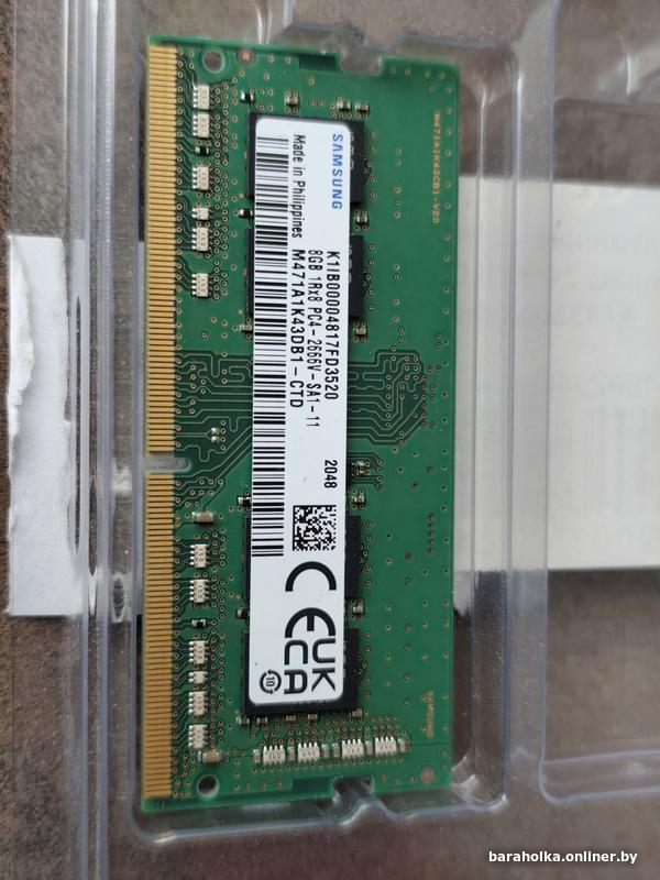 Продам оперативную память для ноутбука или мини пк.Причина продажи, установил 16гб в свой мини пк.Оперативная память Samsung ddr 4 8gb/sodimm 2666mhz M471AIK43DB1-CTD Полностью рабочая.Минск