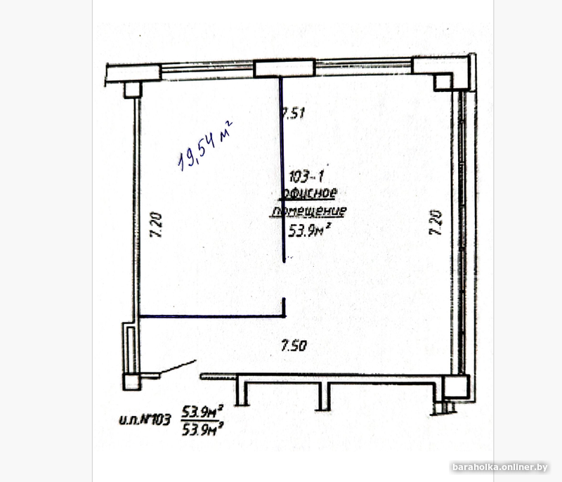 В офисе выделена переговорная комната из алюминиевого профиля с двойным остеклением (19,54 м2). Без мебели.