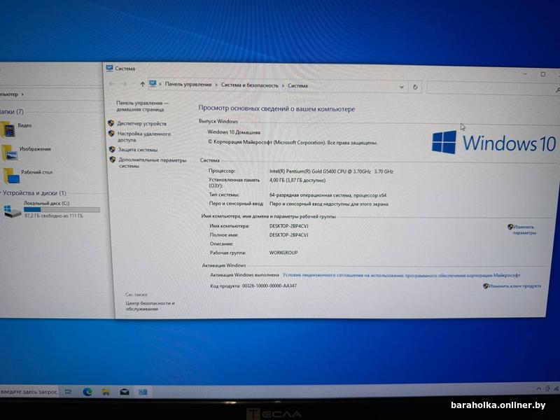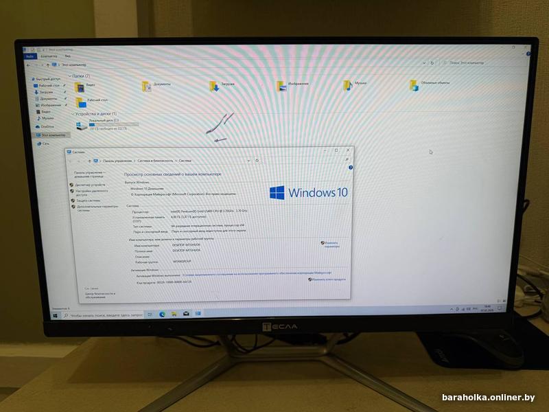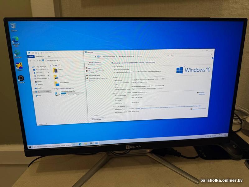 23.8" 1920 x 1080 IPS, матовый, несенсорный, Intel Pentium Gold G5400, 4 ГБ, SSD 240 ГБ, видеокарта встроенная. В отличном состоянии. Никаких нареканий и проблем как по работе, так и внешне. Любые проверки и тесты на месте. Есть второй такой же, только с ссд на 120гб, единственное, есть жирные царапины на экране, смотреть фото, его готов отдать за 300. Торга нет. 8(033)6599055