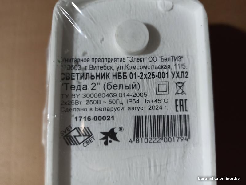 Новый (в заводской пленке) бытовой светильник, размеры 360*96*84 мм, 2 патрона Е 27, IP 54, р-н Спортивной/Пушкинской, вышлю почтой