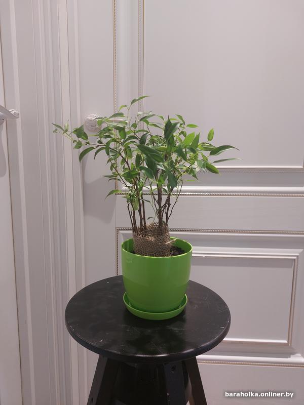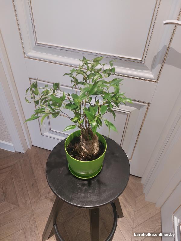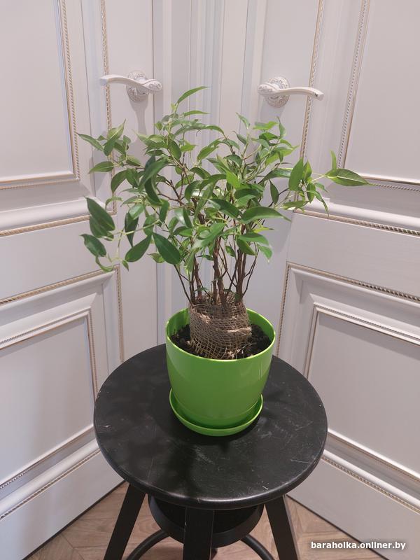 Взрослый фикус Бенджамина Наташа в зеленом пластиковом горшке (входит в стоимость). Высота: от земли - 27 см, от пола (с учетом горшка) - 36 см. Взрослое комнатное и неприхотливое растение. Почтой НЕ отправляю. По Минску - самовывоз.
