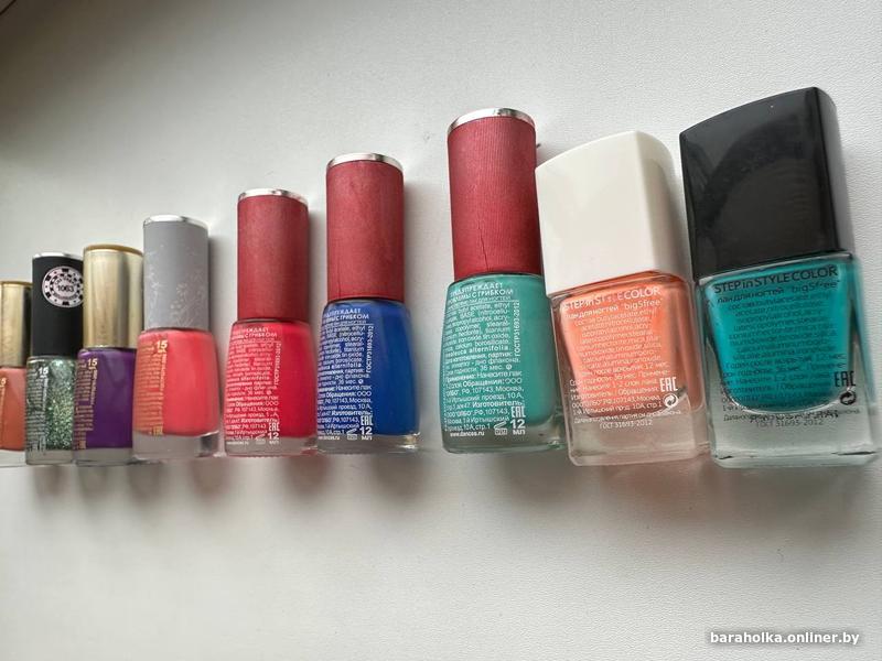 Лаки никогда НЕ использовались. НЕ НОВЫЕ, сроки годности отсутствуют. Можете перепродать часть, использовать для творчества или практики (у меня их очень много, поэтому в одни руки и дешево)